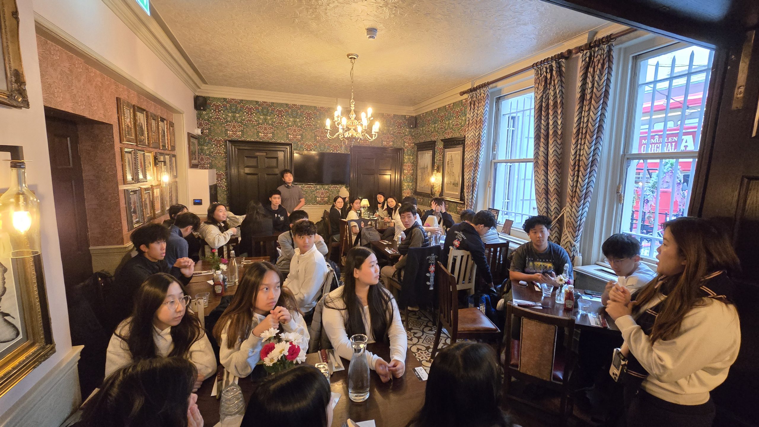 The group had a very LONG but pleasant day. Following our airport pick-up, we visited King’s College London, where we experienced an introduction to international relations and British-style debate. We then had a brief tour of the King’s campus, followed by lunch. We were joined by two fabulous Class of 2025 Alumni – Anya Grady and Viola Wong – who joined us for the UCL campus tour and to share their thoughts on the Post-16 experience at WIS and life at UCL. The day finished with a bus tour of London’s major sites and dinner at a restaurant in London’s Chinatown.